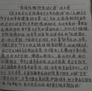 听完这堂思政大课,最触动我的是冯秀军老师讲的“战疫中90后、00后的‘非典型’青春”!面对青春被打标签,被质疑,多少的90后00后在抗疫中站了出来,有的直奔一线,有的后方支援! “愿中国青年都摆脱冷气,只是向上走,不必听自暴自弃者流的话。能做事的做事,能发声的发声。有一分热,发一分光。就令萤火一般,也可以在黑暗里发一点光,不必等候炬火。”作为新时代的青年,我想对鲁迅先生说,我们如您所愿!