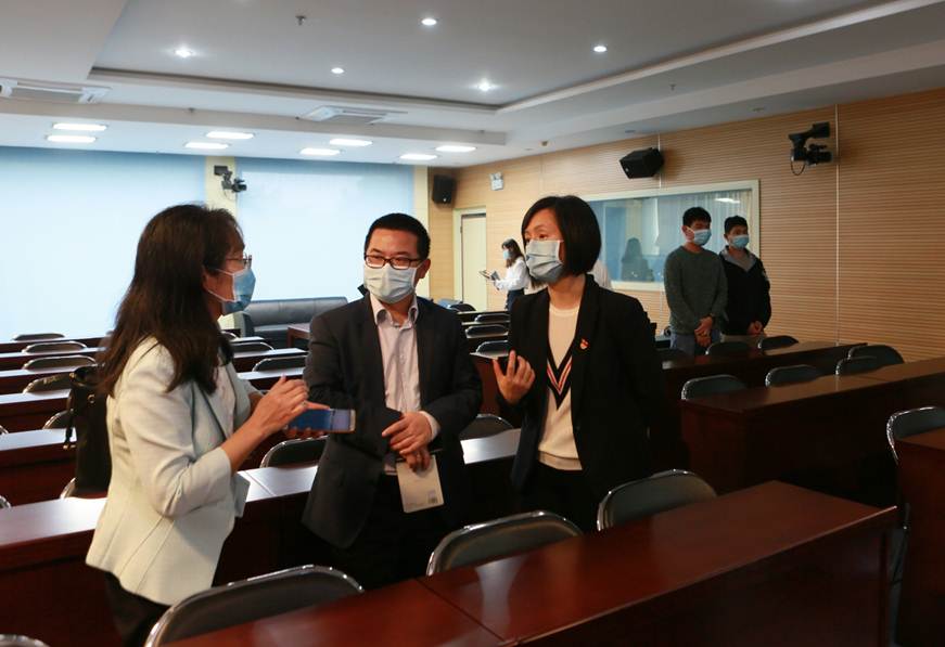随后,调研组通过视频连线慰问学校在鄂师生以及援鄂校友代表,并实地走访学校信息管理中心值班室、信息中心高清录播室等,对网络安全、网络教学进行了检查。