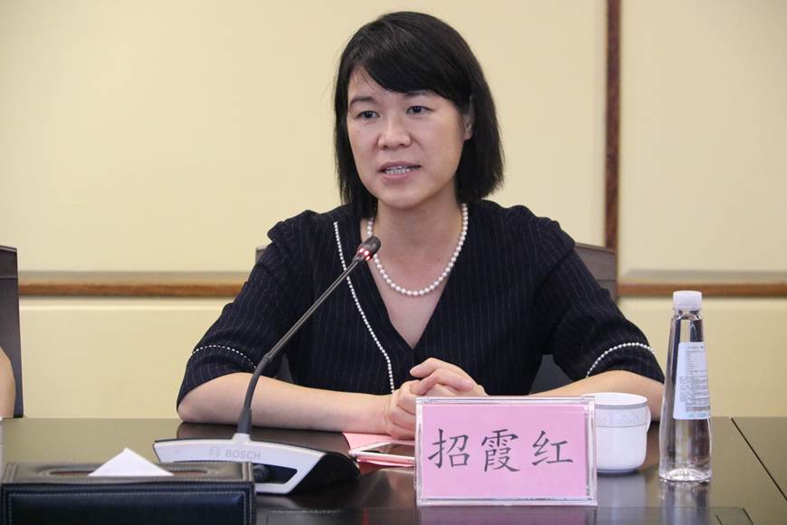 招霞红副区长讲话。她指出,顺德具有深厚的中医群众基础,为促进中医发展,区卫健局拟计划开设中医科,发展中医文化,助推中医发展,未来拟在顺德职业技术学院附属中医医院设立中医博物馆,传承中医文化,真正干实事,支持附属中医医院发展,支持顺德中医事业发展。