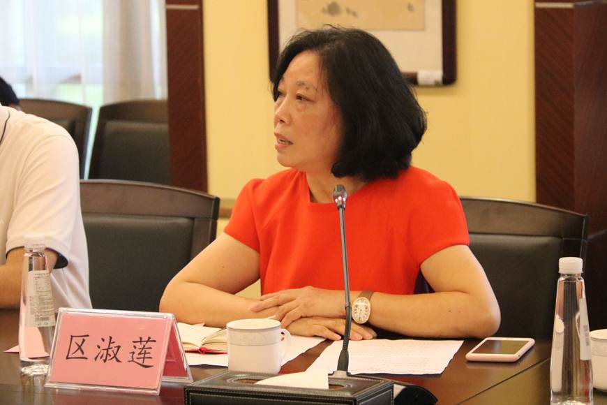 广意集团董事兼总经理区淑莲发言。她希望双方多方位、多层次深度合作,充分做好产教研资源整合,开创顺德中医发展新局面。