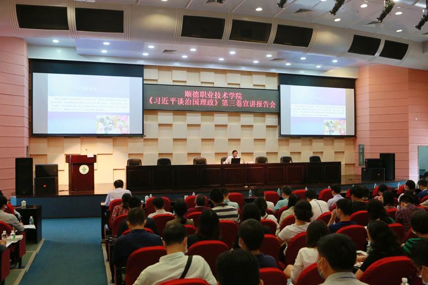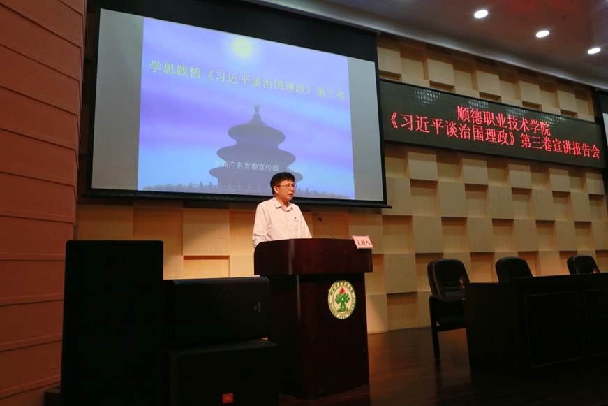 10月14日,德赢在学术报告厅举行《习近平谈治国理政》第三卷宣讲报告会,邀请广东省委宣传部副部长、《习近平谈治国理政》第三卷省委宣讲团成员杜新山作“牢牢把握坚持以人民为中心这一主线”专题辅导授课。报告会由学校党委书记李先祥主持。学校党政领导班子成员,全体教职工参加了报告会。