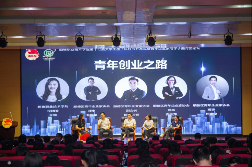11月4日,德赢在李佘少鸿楼六号报告厅举办了第十七届大学生墨子科技节开幕式暨青年企业家与学子面对面论坛。学校党委书记李先祥,共青团顺德区委副书记曾浩宇,顺德青年企业家(青商)协会副会长吴锦荣、欧阳咏智,学校党委宣传部、学生工作部、校团委、科技处、校友会基金会、顺大公司等部门负责人,各二级学院党总支书记、团委书记,以及来自顺德区青企协的青年企业家们和现场学生共约300人参加本次活动。