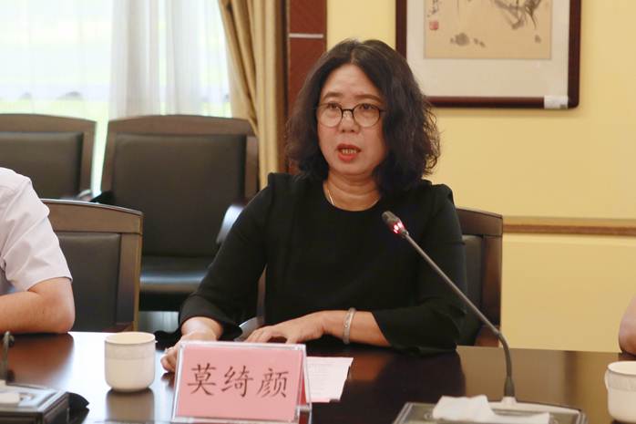 莫绮颜董事长兼总裁发言。她希望双方通过全方位多层次进行深度合作,充分做好国际人才培养,为社会培养出更多国际化人才,开创顺德企业国际化新局面。