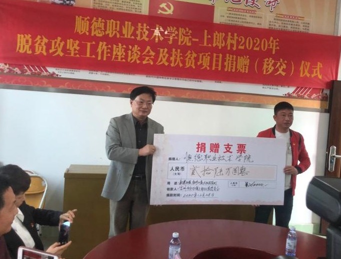 12月28日下午,“顺德职业技术学院-上郎村2020年脱贫攻坚工作座谈会及扶贫项目捐赠(移交)仪式”在上郎村村委会举行。学校校长夏伟,党委委员、组织人事处处长陈文海,党委委员、酒店与旅游管理学院院长甘慕仪,顺德区委农村和社区办公室常务副主任、顺德区驻雷州市扶贫工作组组长冯炳全,雷州市纪家镇副镇长卓秋玲,上郎党支部书记黄祖魁,德赢部分中层干部和教职工、上郎村党员代表、村民代表、贫困户代表以及驻村扶贫工作队全体成员参加了本次活动。