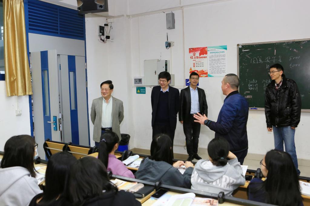 为营造关心教学、重视教学、严格教学管理的氛围,确保良好的教学秩序,3月1日开学第一日上午,学校党委书记李先祥、校长夏伟带队前往教学楼开展教学巡查工作。学校领导黄健光、罗丹,党委宣传部、发展规划处、教务处、学生工作部以及各二级学院负责人参加了巡查。