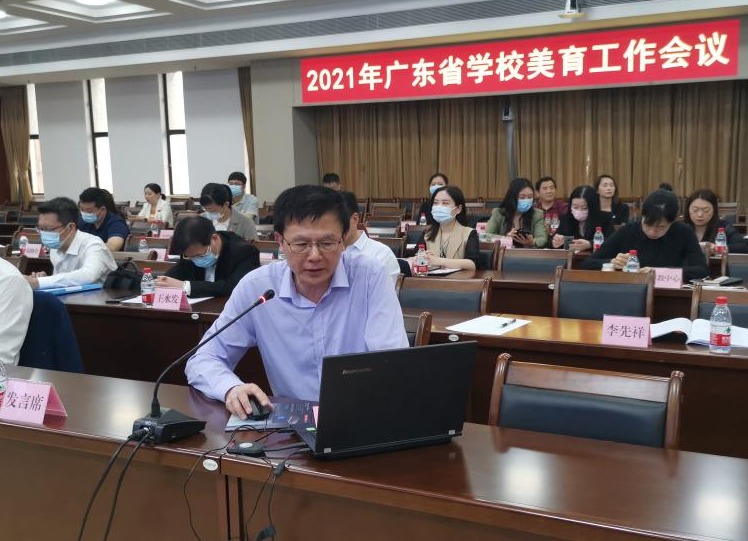 4月8日,为着力推动全省学校美育改革发展,共同做好新时代具有广东特色的美育工作,广东省教育厅召开全省学校美育工作视频会议,全省各地市教育局分管领导、各普通高校和省属中职与中小学校分管领导、学校美育工作负责人、省教育厅有关处室负责人参加了本次会议。会议由广东省教育厅体卫艺处长陈健生主持,体卫艺处三级调研员康天东总结了2020年美育浸润计划活动并对2021年美育浸润计划做了工作部署,广东省教育厅二级巡视员邱克楠出席会议并讲话。德赢党委书记李先祥作为高职院校唯一代表作了大会交流发言。