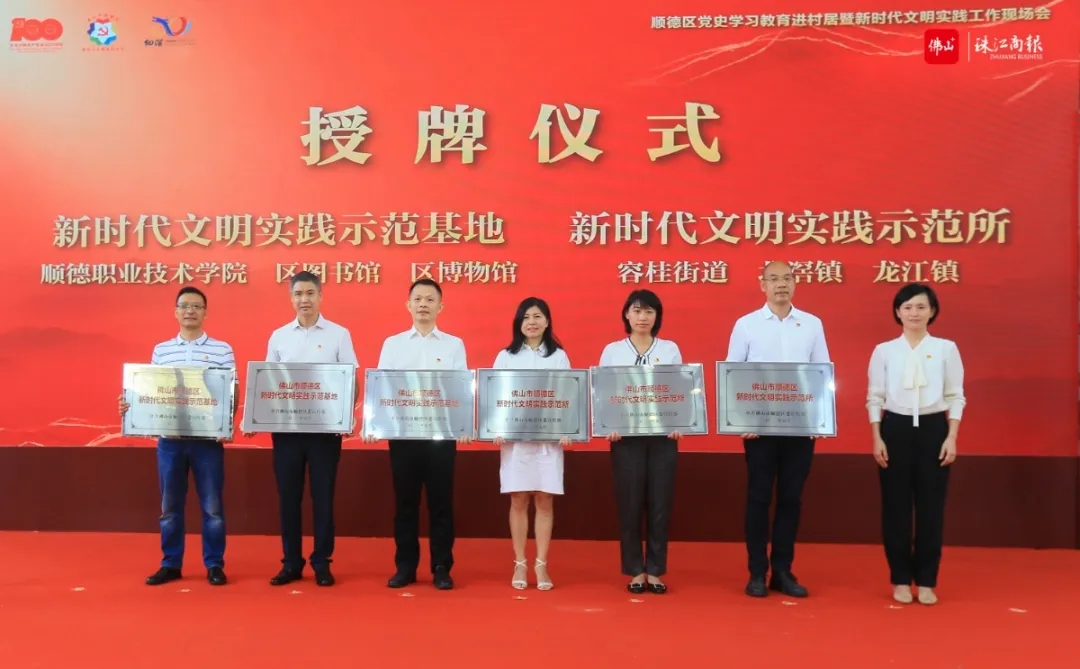 为进一步推动党史学习教育和新时代文明实践工作扎实深入开展,5月11日,佛山市顺德区委宣传部、佛山市顺德区委组织部、佛山市顺德区委党史研究室、佛山市顺德区精神文明建设委员会办公室联合举行党史学习教育进村居暨新时代文明实践工作现场会,对全区3个新时代文明实践示范基地、3个新时代文明实践示范所和9个新时代文明实践示范站进行授牌。德赢被确定为佛山市顺德区新时代文明实践示范基地。