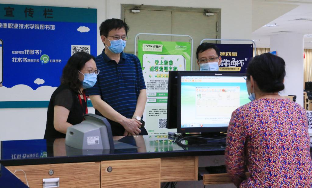 李先祥书记考察图书馆服务台,了解读者到馆、图书借阅等情况