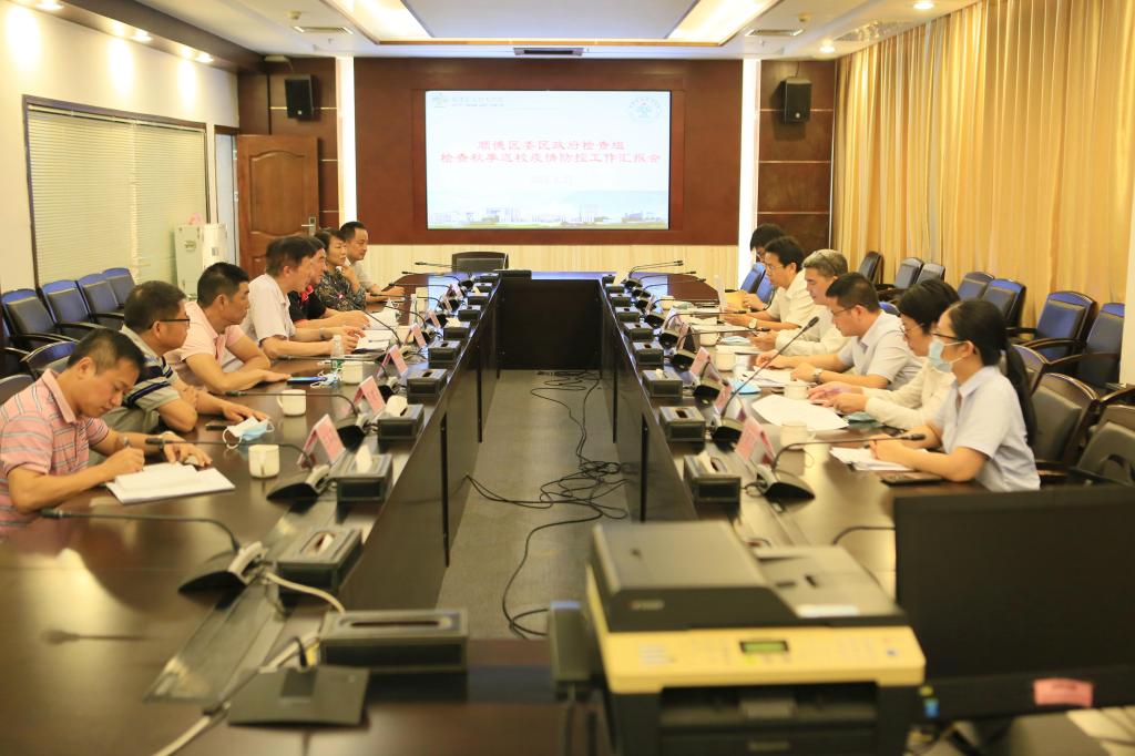 为贯彻落实省、市、区《关于做好2021年秋季学期学校疫情防控工作的通知》要求,8月27日上午,顺德区委副书记肖秀明带领区委区政府办公室、区教育局、区卫健局、区疾控中心相关负责人一行,来到德赢检查秋季学期开学疫情防控工作。学校党委书记李先祥汇报德赢开学疫情防控工作情况。