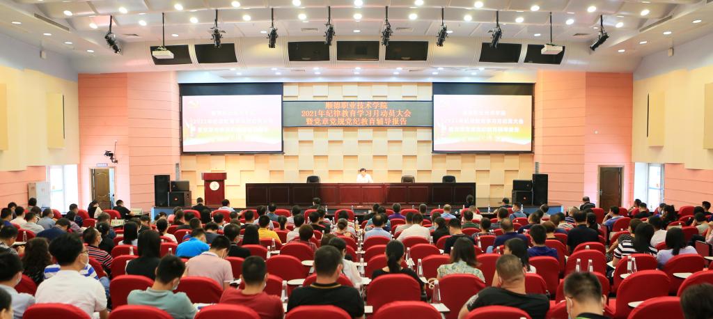 为扎实推进“学党史悟思想 守纪律铸忠诚”2021年纪律教育学习月活动,9月29日下午,学校召开纪律教育学习月动员大会暨党章党规党纪教育辅导报告会。学校党政班子成员,各基层党支部支部书记,全体正科以上干部(后勤保卫处科室副职以上干部),校党政办招投标科、组织人事处、纪监审办全体人员、财务处、资产与设备管理处全体人员参加会议。会议由学校党委副书记刘毓主持。