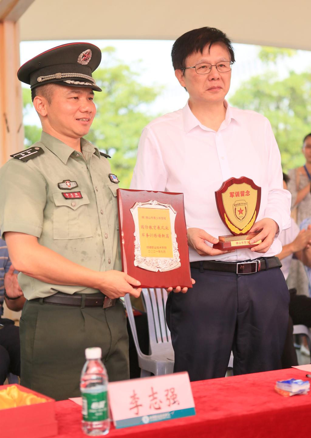 李先祥向承训部队赠送了牌匾,感谢全体教官对德赢军训工作的大力支持与辛勤付出。