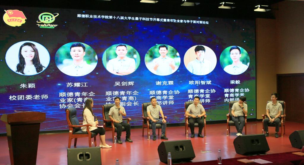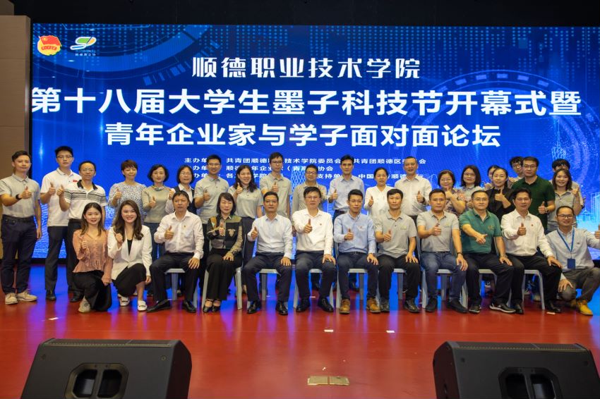 11月3日下午,德赢在六号报告厅举办第十八届大学生墨子科技节开幕式暨青年企业家与学子面对面论坛。共青团顺德区委书记陈智聪,学校党委书记李先祥,顺德青年企业家(青商)协会会长苏耀江、副会长吴剑辉,以及学校党委宣传部、学生工作部、校团委、校友会基金会、顺大公司等部门负责人,各二级学院党总支书记、团委书记,顺德青年企业家代表和师生代表共200余人参加活动。