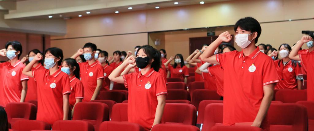 113支实践团队学生代表集体宣誓,发出顺职学子“以青春之我,担时代之责;以青春之名,赴时代之约”“请党放心,强国有我”的誓言。