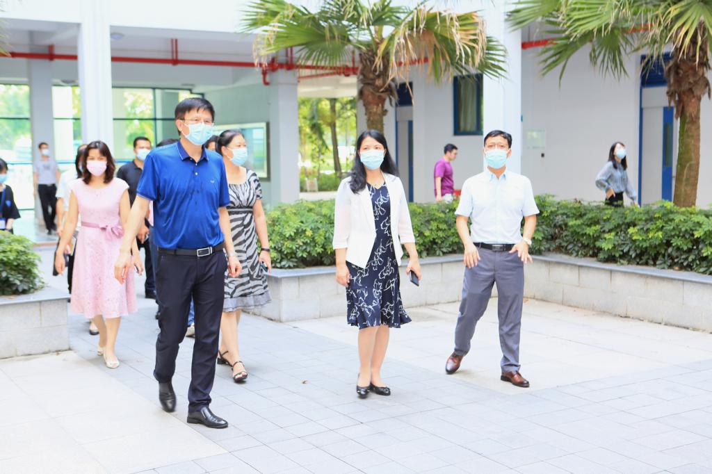 8月2日下午,佛山市人民政府副市长周紫霄率队来到德赢督导检查创建全国文明城市工作。顺德区副区长柯宇威、顺德区教育局局长温联洲,学校党委书记李先祥,学校党委委员、党委宣传部部长汤恺,学校有关职能部门负责人等参加检查。