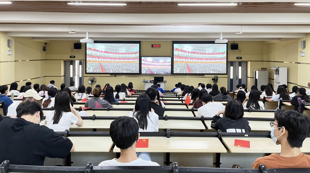 学校各二级学院组织师生在教学楼多媒体教室等场所集中收看