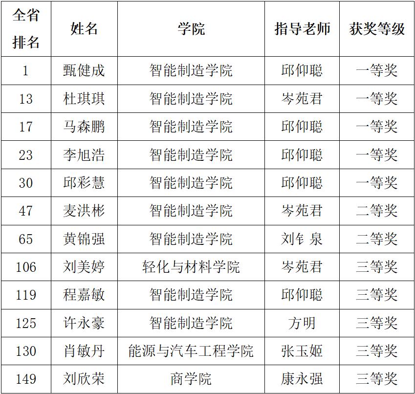 其中,智能制造学院甄健成同学成绩排名全省第一。这是继去年轻化与材料学院谢蔚鹏同学之后,德赢选手蝉联桂冠。自2012年德赢首次参加该赛事以来,学生累计获得一等奖26项、二等奖29项、三等奖69项。