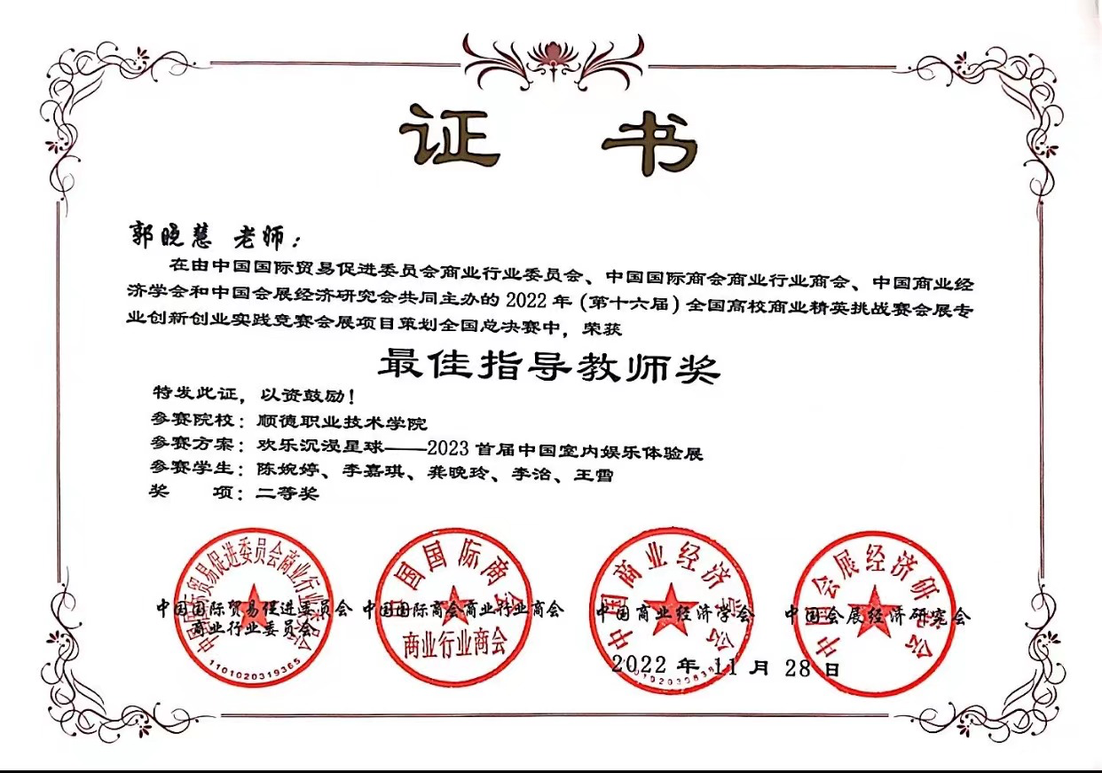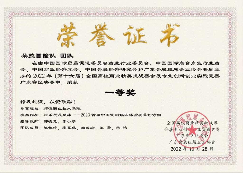 近年来,德赢会展策划与管理专业积极探索“产赛教融合”人才培养模式,努力培养高素质技术技能复合型人才。目前,该专业建有校外产教融合基地3个,校企合作育人成效显著。2022年度,专业师生积极参与国家级、省级各项比赛硕果累累,包括斩获2022年全国高校精英挑战赛会展专业创新创业实践竞赛广东省一等奖、国家二等奖各1项,2022年全国大学生广告艺术大赛广东省赛二等奖2项、三等奖1项。