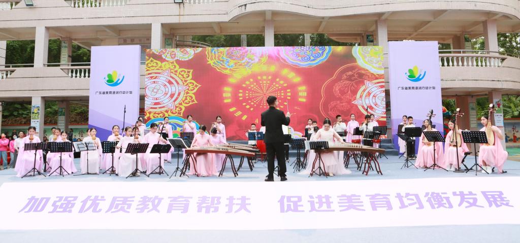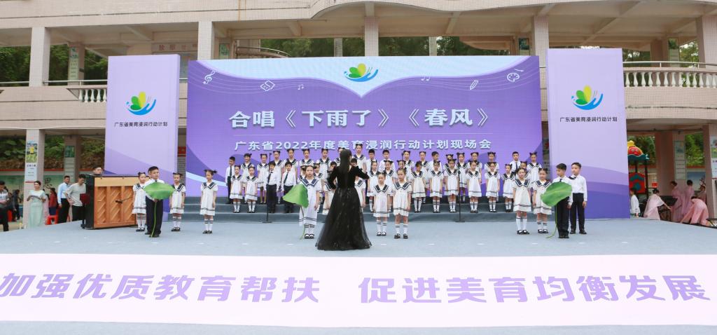 习近平总书记指出,“做好美育工作,要坚持立德树人,扎根时代生活,遵循美育特点,弘扬中华美育精神,让青年一代都健康成长。”实施美育浸润行动计划是广东省深入学习贯彻习近平新时代中国特色社会主义思想和党的二十大精神,落实中共中央办公厅、国务院办公厅《关于全面加强和改进新时代学校美育工作的意见》和教育部办公厅《关于开展体育美育浸润行动计划的通知》要求,充分发挥高校人才资源优势,推进乡村教育振兴,促进美育优质均衡发展的重要举措。行动计划自2020年3月实施以来,广东省教育厅不断创新美育浸润行动计划工作思路,各高校和各地市教育行政部门主动作为,累计帮扶192所中小学,覆盖、辐射、受益学生数达34万余人,将美的种子播撒在更多学生心灵,促进教育公平与协调发展,形成充满活力、多方协作、开放高效的广东省学校美育新格局。