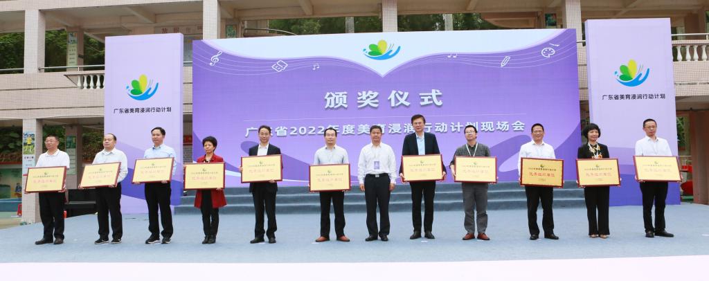 会议表彰了2022年度美育浸润行动计划优秀组织单位。顺德职业技术学院、广州美术学院、星海音乐学院、华南师范大学、广州大学、广东技术师范大学、惠州学院、广东省外语艺术职业学院、阳江市教育局、清远市教育局、湛江市教育局、梅州市教育局获评2022年度美育浸润行动计划优秀组织单位。