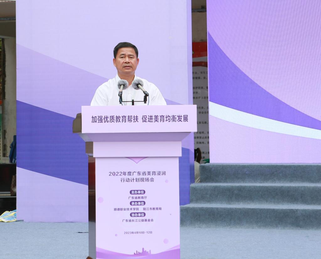 4月10日至12日,由广东省教育厅主办,德赢和阳江市教育局承办,广东省长江公益基金会协办的广东省2022年度美育浸润行动计划现场会在阳江市召开。会议围绕“加强优质教育帮扶,促进美育均衡发展”主题,开展美育浸润行动计划工作研讨交流、展演、观摩,总结全省2022年度美育浸润行动计划工作,部署2023年相关工作。广东省教育厅二级巡视员邱克楠、阳江市人民政府副市长黄宁、星海音乐学院校长蔡乔中、德赢党委书记李先祥,以及来自各浸润高校和对口支持地市的相关负责人和教师代表参加会议。