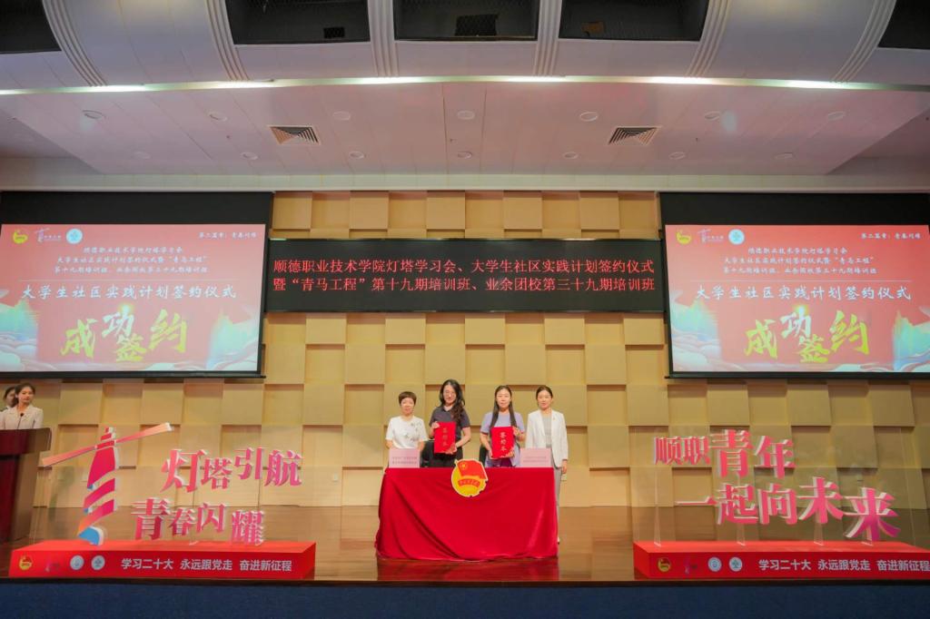 在陈颖和罗丹见证下,德赢团委与顺德团区委签约结对共建大学生社区实践计划。该计划旨在促进校地深度融合,引导青年学子在社区基层实践中受教育、长才干、作贡献,实现青年人才发展与基层治理建设齐头并进。