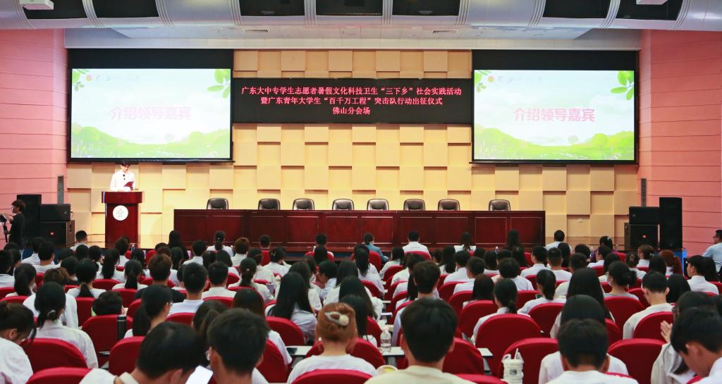 为引导广大青年学生把课堂学习和社会实践紧密结合,厚植爱农情怀,练就兴农本领,在乡村振兴的大舞台上建功立业,7月7日上午,广东青年大学生“百千万工程”突击队行动出征仪式(佛山分会场)暨顺德职业技术学院2023年暑期“三下乡”社会实践活动启动仪式在一号学术报告厅举行。