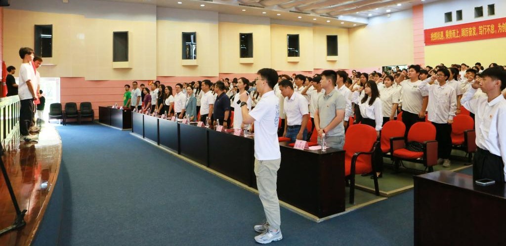 全体人员集中收看华南理工大学主会场出征仪式后,陈颖为佛山市青年大学生“百千万工程”突击队授旗,为入选广东青年大学生“百千万工程”突击队行动100个优秀示范项目的团队颁牌。叶炜杰、刘毓共同为广东省教育厅2023年度美润行动计划社会实践团、顺德区“阳光行动”暨德赢2023年暑期“三下乡”社会实践团队授旗。图书馆、医药卫生学院、设计学院与顺德德和社区、中区社区、古鉴村进行了结对共建签约。随后,全体实践队员集体宣誓,发出“勇毅前行、挺膺担当,努力争做有理想、敢担当、能吃苦、肯奋斗的新时代青年”的铮铮誓言。