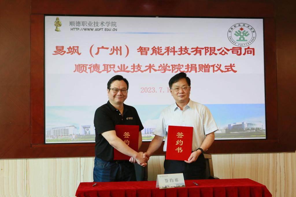 仪式上,德赢与易飒(广州)智能科技有限公司签署新一轮5年校企合作协议,易飒(广州)智能科技有限公司向德赢捐赠价值250万元的教学设施设备。