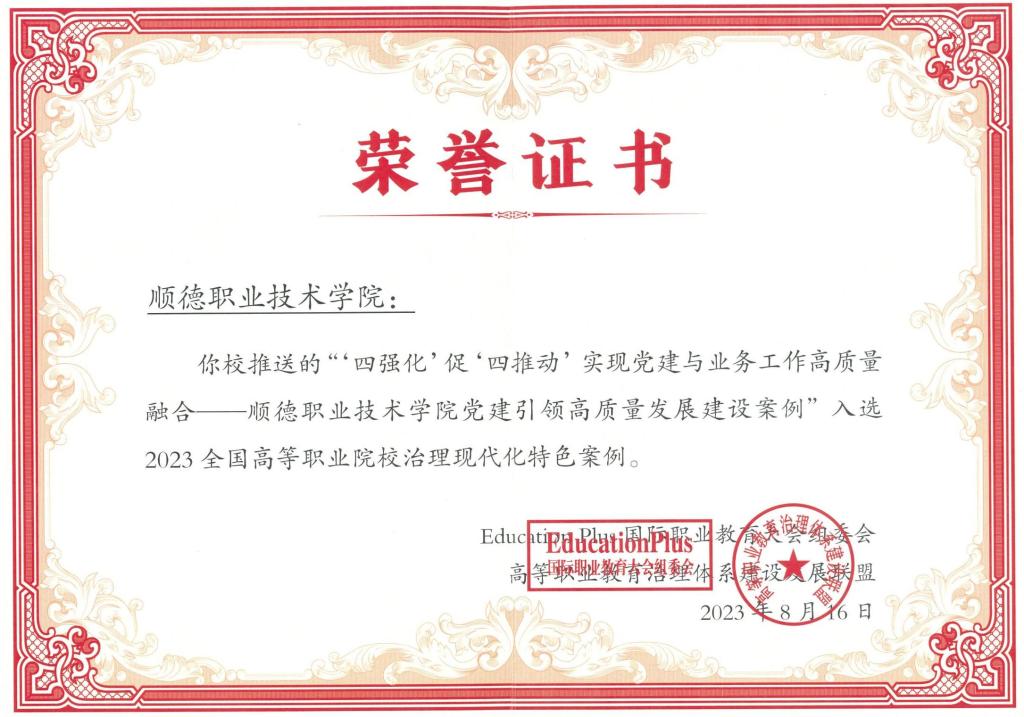 8月16日,高等职业院校治理现代化交流研讨会暨高等职业教育治理体系建设发展联盟2023年会在湖南长沙召开。会上,德赢入选2023全国高等职业院校治理现代化典型院校名单;德赢选送的案例《“四强化”促“四推动”实现党建与业务工作高质量融合》《一统三融四维协同四位一体:构建具有中国特色高职教育的文化育人范式》入选2023全国高等职业院校治理现代化特色案例,将收录于《中国高职院校治理现代化报告2023》出版;德赢当选全国高等职业教育治理体系建设发展联盟副理事长单位。