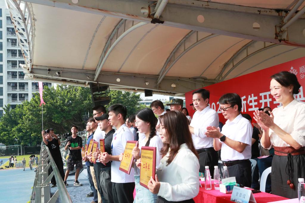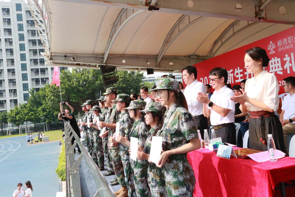 风劲好扬帆,奋斗正当时。9月28日上午,德赢在体育场举行2023级新生开学典礼暨军训总结表彰大会。武警佛山支队副参谋长陈虹旭少校,学校党政领导班子成员、各职能部门和二级学院负责人、全体新生辅导员、全体2023级新生参加活动。
