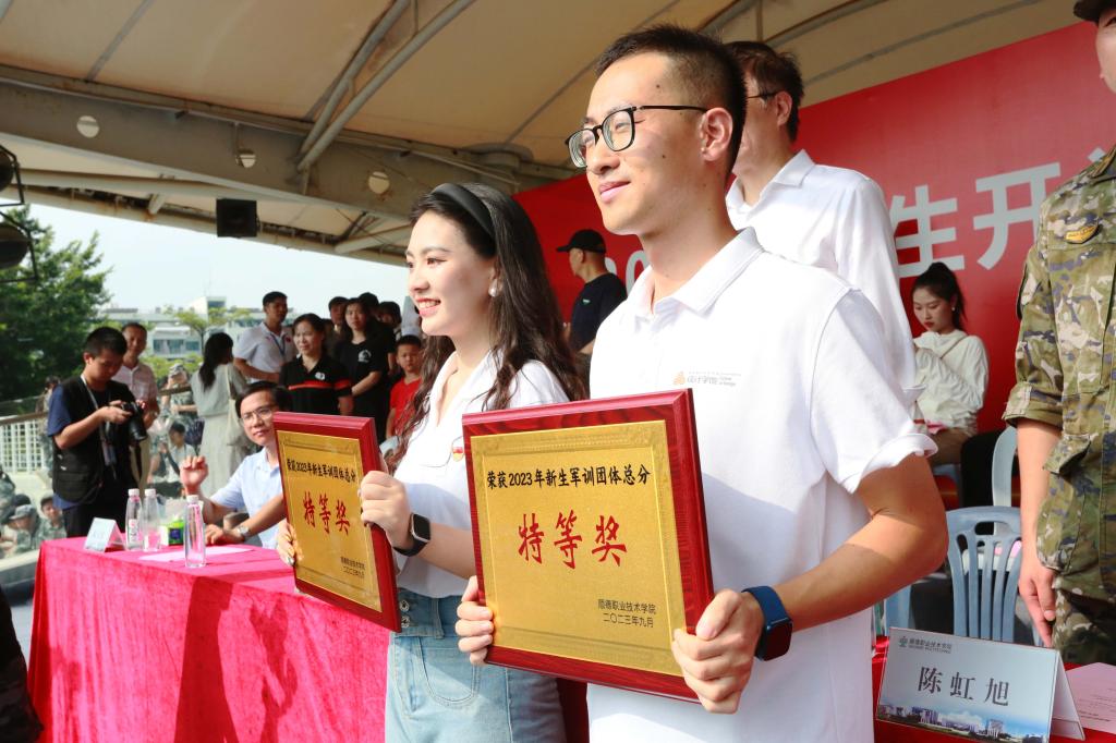 9月15日至28日,德赢组织2023级新生进行军事技能训练。在学校党政领导的关怀与支持下,在承训单位教官和广大师生的共同努力下,军训工作取得可喜成绩,涌现出一批先进集体和个人。会上,学校党委副书记刘毓宣读《关于表彰2023级新生军训先进集体和个人的决定》。学校党政领导向优秀教官、军训标兵、优秀军训团体代表颁发证书和奖牌。李先祥向承训部队赠送牌匾,向全体教官对德赢军训工作的大力支持与辛勤付出表示感谢和敬意。