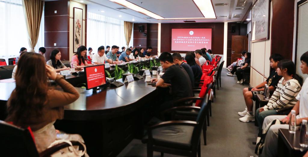 民族团结一家亲,同心奋进新征程。2023年顺德职业技术学院统一战线学习贯彻党的二十大精神主题实践系列活动之民族团结进步宣传月学习教育暨少数民族师生联谊活动,10月17日下午在行政楼1-117会议室举行,结合深入开展主题教育,学习贯彻习近平总书记关于加强和改进民族工作的重要思想,促进各民族师生手足相亲、守望相助,不断铸牢中华民族共同体意识,推进学校民族团结进步教育高质量发展。