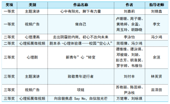 近日,广东省教育厅公布了2023年“5·25”大学生心理健康月系列活动评选结果,德赢师生作品获一等奖2项,二等奖2项,三等奖4项。