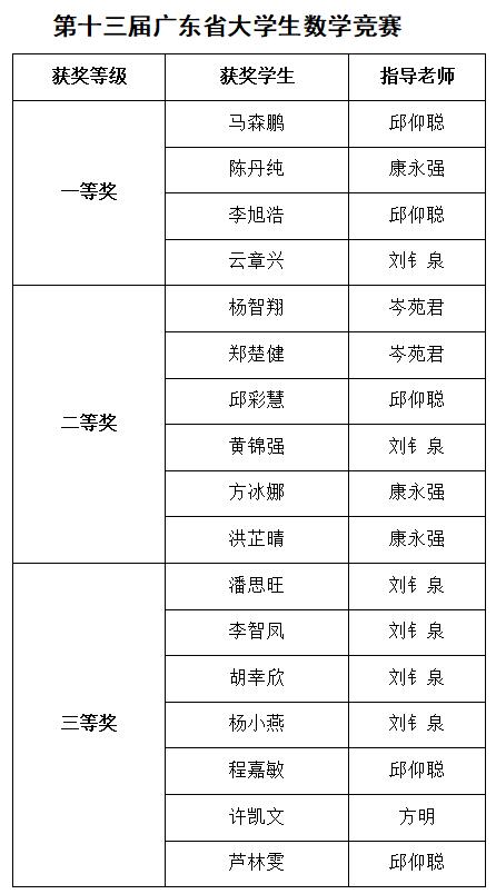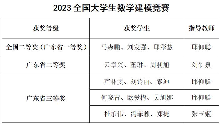 近日,2023年全国大学生数学建模竞赛、第六届“泰迪杯”数据分析技能赛、第十三届广东省大学生数学竞赛获奖名单相继揭晓。德赢喜报连连,硕果累累,在上述竞赛中获得全国一等奖4项、二等奖5项、三等奖1项,省级一等奖5项、二等奖7项、三等奖10项。