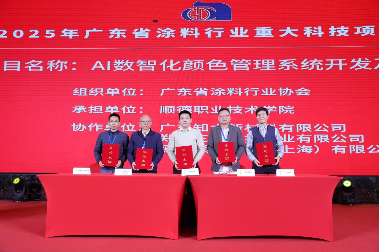 会议期间还举行了《2023-2025 广东省涂料行业重点科技项目》签约仪式。本次涂料行业重点科研项目,是涂料行业首创的科技创新选题遴选,旨在鼓励涂料行业进行科研技术创新,调动科学技术工作者的积极性和创造性,提高广东涂料行业科技创新能力,促进涂料行业科技成果向生产力转化,推动广东涂料实现绿色低碳可持续高质量发展。