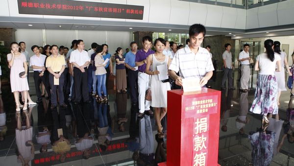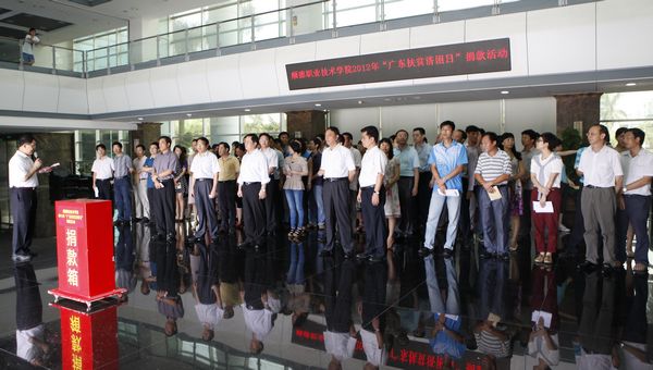 6月29日上午,德赢在行政楼一楼大堂举行2012年“广东扶贫济困日”捐款活动,以实际行动为贫困人口、弱势群体和困难群众提供力所能及的帮助。学校领导夏伟、何锐连、罗勇武、陈粟宋、刘毓、谭谦章,机关全体教职员工,各院系部、教辅部门代表参加活动。会议由党委办公室负责人主持。