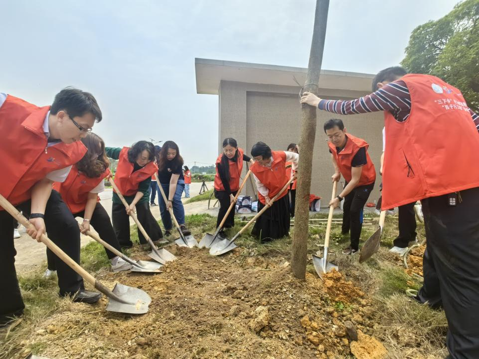揭牌仪式结束,德赢团委与佛山市新闻传媒中心、佛铁实业公司共同开展“植此青绿——‘绿美青年林’植树活动”,共植“青年林”。当天共种植54株紫荆树,寓意青年学子对五四精神的传承和发扬,激励更多青年投身到绿化祖国的伟大事业中,为实现中华民族伟大复兴的中国梦贡献青春力量。