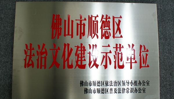 德赢被确定为“佛山市顺德区法治文化建设示范单位”