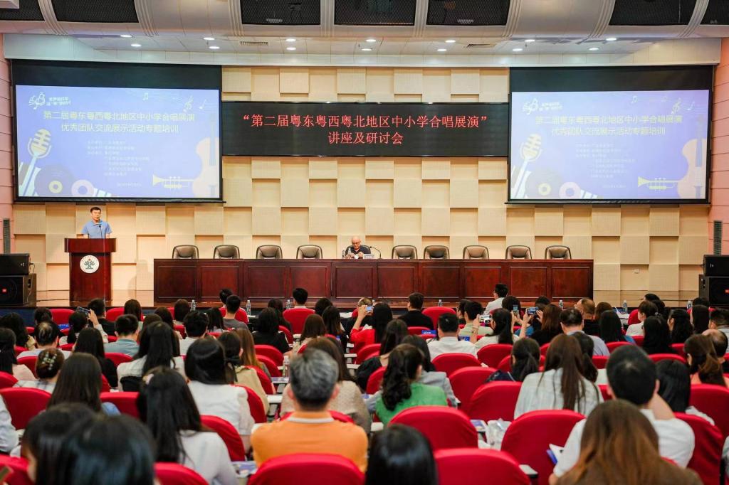 4月20日上午,专题讲座及研讨会在学术交流中心举行。钟善金等广东省美育专家结合本次活动评审整体情况,为与会人员作“春雨润大地 美育进校园”专题培训,围绕合唱展演活动及粤东粤西粤北美育调研情况进行探讨。
