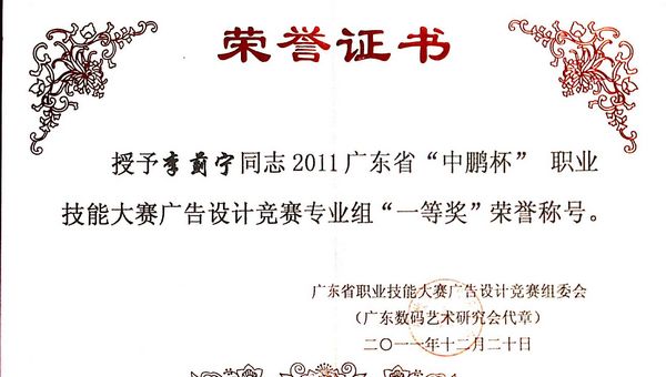 近日,为表彰2011广东省“中鹏杯”广告设计职业技能竞赛(专业组)竞赛获奖选手,省人力资源和社会保障厅授予前5名的优秀选手“广东省技术能手”荣誉称号。德赢设计学院教师李蓟宁在大赛中以专业组第一名的优异成绩,获专业组一等奖并获 “广东省技术能手”荣誉称号。