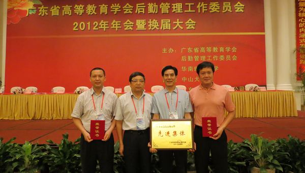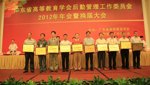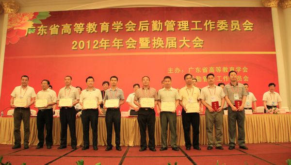 5月22日至24日,广东省高等教育学会后勤管理工作委员会2012年年会暨换届大会在台山召开,广东省教育厅党组成员王玉学副巡视员、后勤产业办朱俊文主任等有关领导、省高校后勤管理工作委员会成员和省内88所高校300多名代表参会。德赢陈粟宋副校长、总务处及鼎瀛物业公司相关负责人一行4人参加了大会。德赢总务处被评为“广东省高校后勤工作2009—2011年度先进集体”(全省共有30所高校获此荣誉,高职院校有7所),饶喜明、莫桂新、张金莉被评为先进个人。