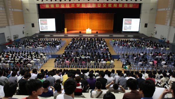 为进一步加强学校法制安全教育工作,增强师生们的法制安全意识,切实提高大学生安全防范的能力。4月11日下午,德赢邀请区公安局法制教官在梁銶琚礼堂为全校师生举行了一场精彩的法制安全教育报告会。学校领导谭谦章、保卫处人员、相关辅导员和2500多名学生参加了报告会。