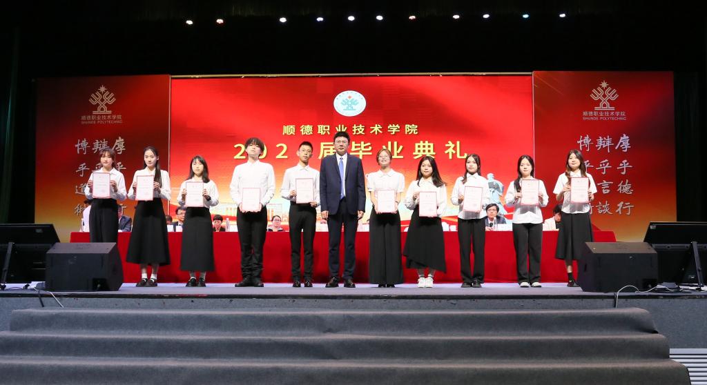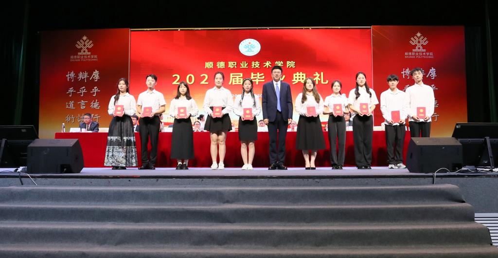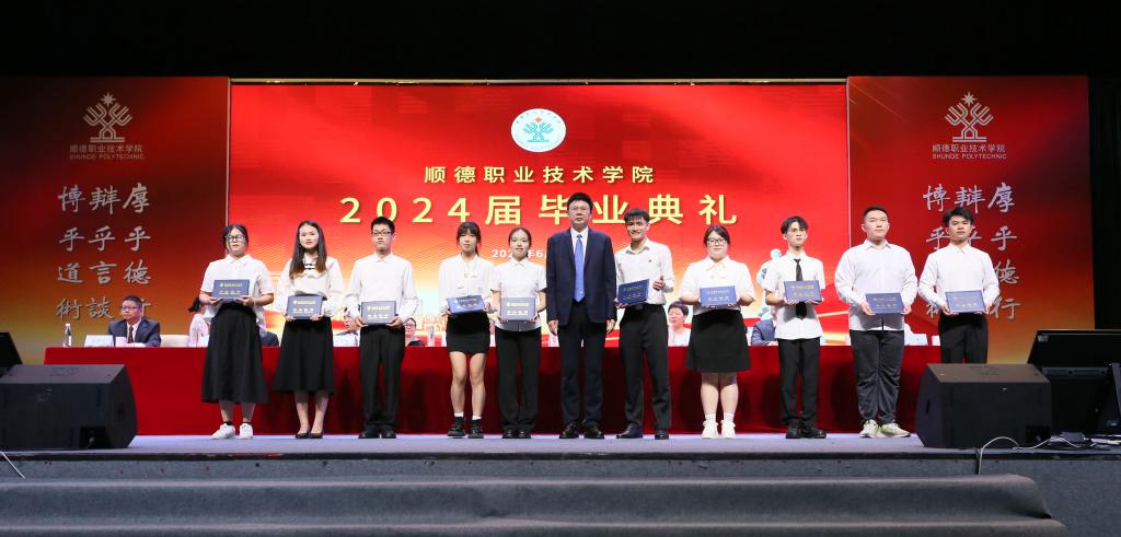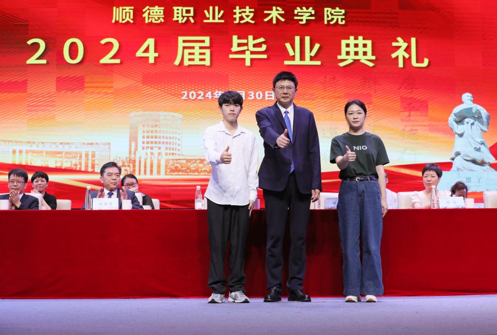 学校党委委员、副校长杨小东宣读《关于准予2024届林梓聪等5232名学生毕业的决定》。在庄严的乐曲声中,学校党委书记李先祥为毕业生代表颁发毕业证书。这证书凝结着顺职学子三年的勤奋与付出,承载着他们的青春与梦想。毕业生们接过证书,脸上洋溢着喜悦、激动与不舍。