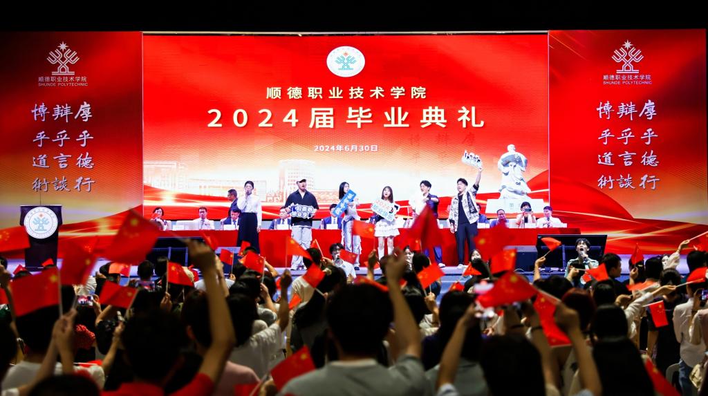 典礼尾声,现场全体起立,合唱校歌《天地之大,任我翱翔》。骊歌声起,青春未央。衷心祝愿2024届顺职毕业生如鲲鹏展翅,扶摇直上九万里,在拥抱未来的大道上,以更加坚定的步伐践行青春理想,与伟大时代双向奔赴,唱响更加精彩的青春之歌!