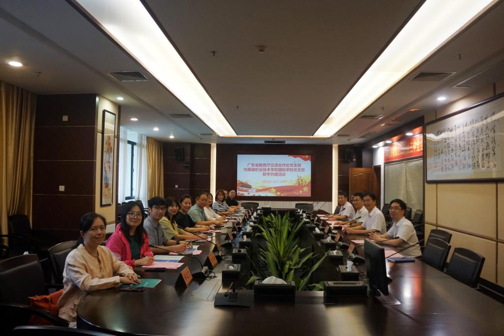 10月18日,广东省教育厅交流合作处(港澳台事务办公室)党支部与德赢国际学院党支部开展联学共建主题党日活动。省教育厅交流合作处(港澳台事务办公室)党支部书记李金俊,德赢党委委员、副校长黄健光,国际学院、马克思主义学院负责人,双方党支部全体党员参加活动。