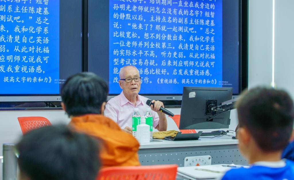 此外,王则柯教授还分享了自己多年来在学习和写作方面的心得,并与师生进行趣味盎然的互动。在英语学习方面,他强调培养语感的重要性;在写作训练方面,他提倡通过朗诵梳理思路,提升写作技巧。