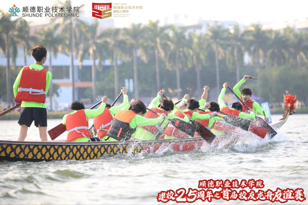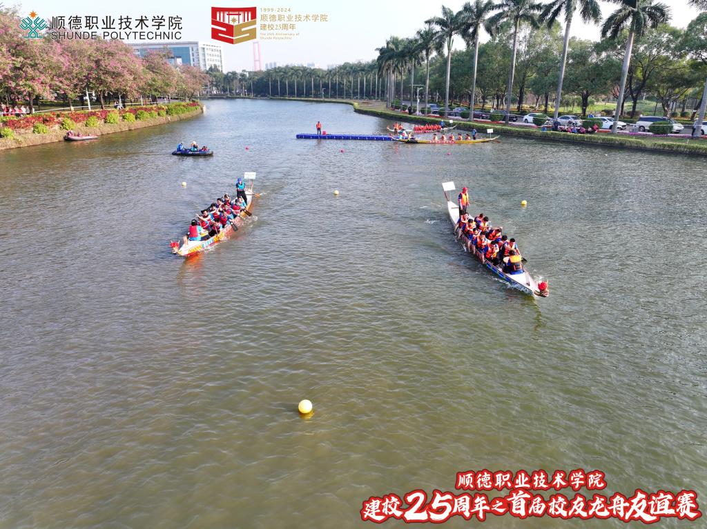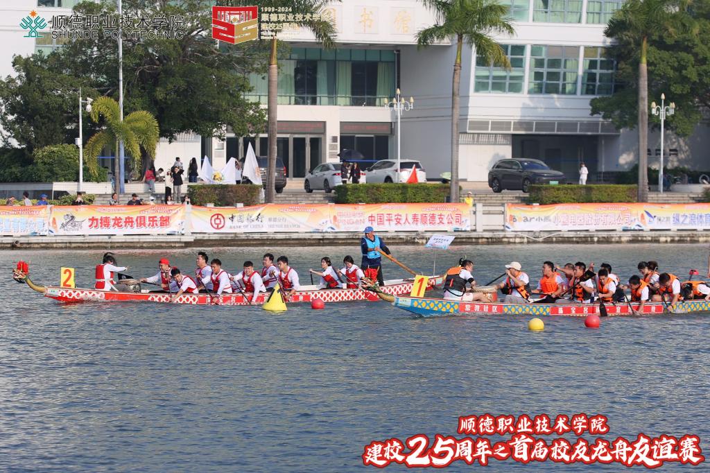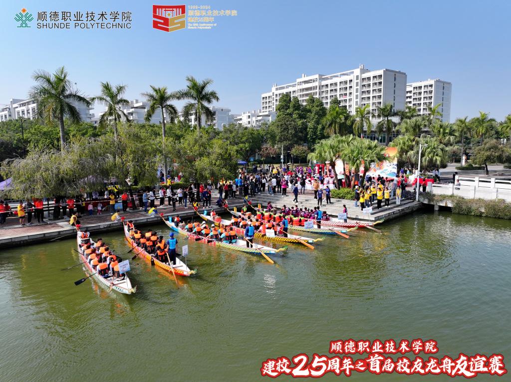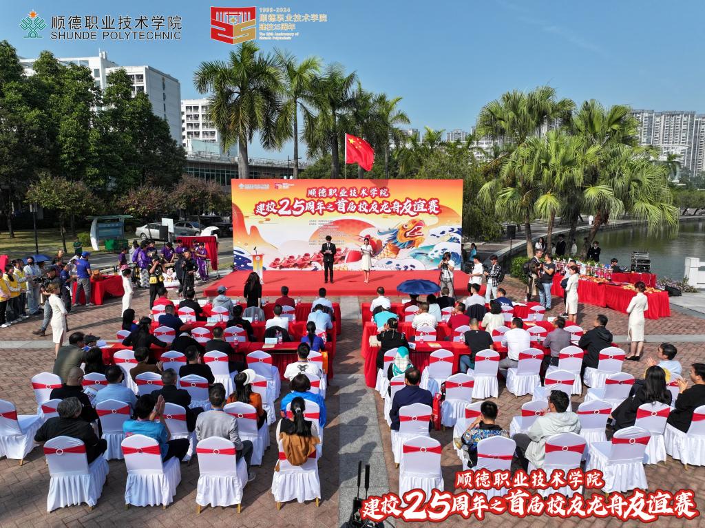 顺风扬帆,德耀廿五。12月11日下午,顺德职业技术学院建校25周年系列活动之首届校友龙舟友谊赛在碧桂园湖隆重举行。24支队伍劈波斩浪、赛龙夺锦,充分展现龙舟文化魅力,为师生校友带来视觉盛宴、沉浸式体验和无限快乐。伴随一艘艘龙舟乘风破浪,迎来25周年华诞的顺职院也乘势而上再加力,举全校之力奋楫飞舟,努力在高质量发展新征程上奋勇争先、再创辉煌。