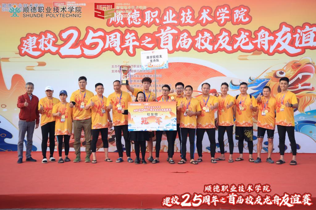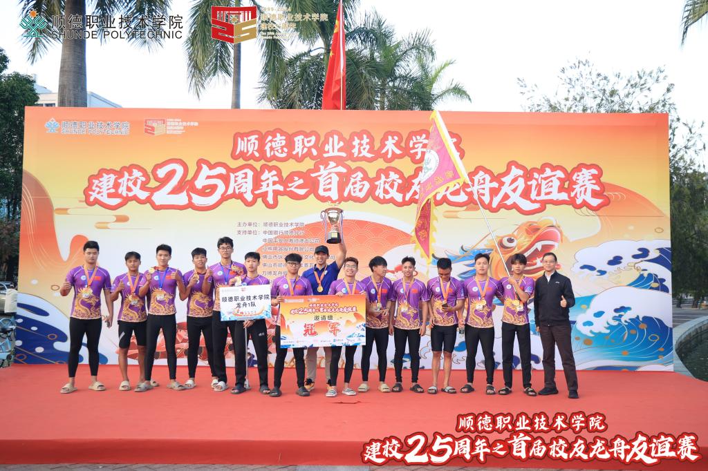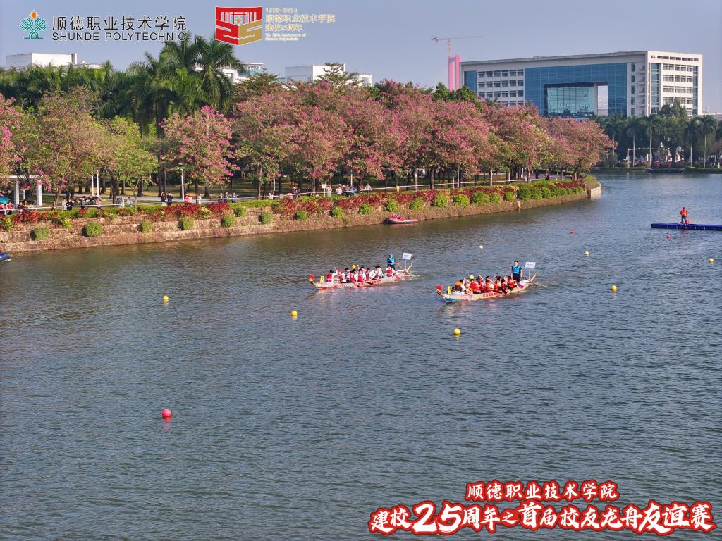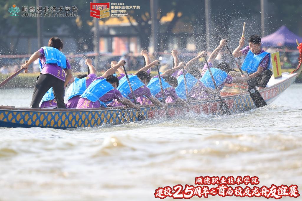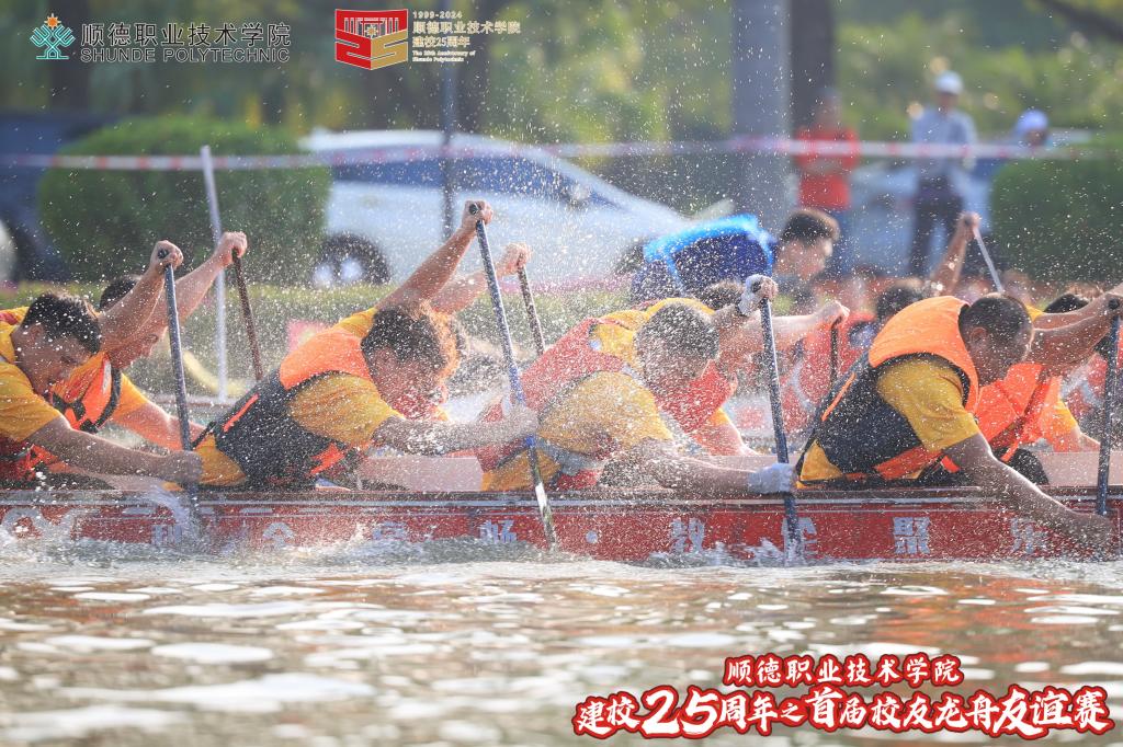 顺风扬帆,德耀廿五。12月11日下午,顺德职业技术学院建校25周年系列活动之首届校友龙舟友谊赛在碧桂园湖隆重举行。24支队伍劈波斩浪、赛龙夺锦,充分展现龙舟文化魅力,为师生校友带来视觉盛宴、沉浸式体验和无限快乐。伴随一艘艘龙舟乘风破浪,迎来25周年华诞的顺职院也乘势而上再加力,举全校之力奋楫飞舟,努力在高质量发展新征程上奋勇争先、再创辉煌。