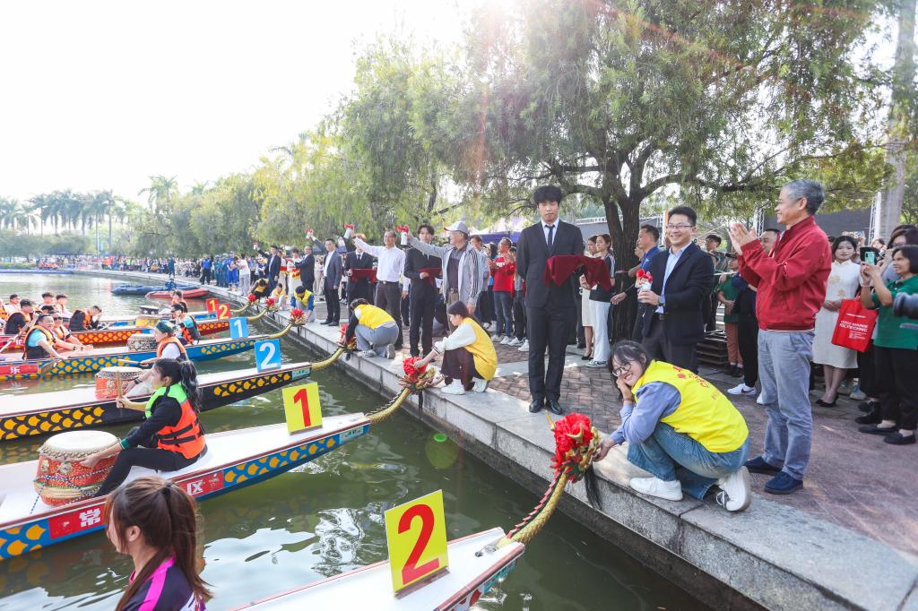 张红兵致辞指出,顺德是“全国龙舟之乡”,龙舟文化源远流长,有着广泛的群众基础。顺职院作为顺德教育的一张亮丽名片,始终坚持以培养高素质技术技能人才为己任,为地方经济社会发展作出了积极贡献。顺职院龙舟文化传承基地获评广东省第二批高校中华优秀传统文化传承基地,顺职龙舟队多次在高水平赛事中取得佳绩。举行龙舟友谊赛活动,就是要进一步弘扬龙舟文化,激发广大师生和校友的爱国热情,增强文化自信,推动顺德文化事业繁荣发展。希望以本次活动为契机,让更多人了解、参与龙舟文化,让龙舟文化成为连接过去和未来、传统和现代的桥梁,成为推动顺德经济社会高质量发展的新动力。