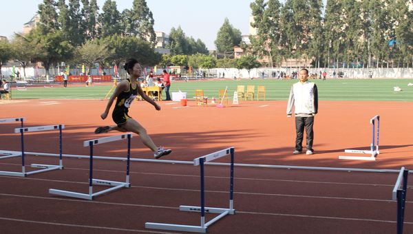 比赛期间正逢低温天气,气温的骤降,北风凛冽,最低气温仅4°,给参加比赛的同学带来挑战,但德赢健儿顶寒风、战病痛,在教练们的精心指导下,排除了一切干扰因素,顽强拼搏。在第一天的比赛中,虽然黄剑秋同学在100米预赛中大腿拉伤,但为了使后继比赛不受到影响,他咬牙坚持,并摘取了男子百米冠军,这给全队上下带来了巨大的动力,鼓舞了士气。接下来的比赛中,黄玉森获得女子100米栏第一名、邹敏仪获得女子400米第一,冼浩贤获得男子1500米第一、廖晓萍获得女子1500米第一、黄婷锋获得女子铅球第三、何伟坚获德男子400米第三,第一天德赢健儿以5金2铜总分71分的成绩位列第一。第二天的比赛天气依然寒冷,全队17人有5人感冒,但德赢田径健儿克服一切困难,再接再厉,其中黄剑秋同学获得男子200米第一、邹敏仪获得女子800米第一、黄玉森同学获得女子400米栏第二、于加弟获得女子800米第三、邓胜雄获得男子400米栏第三、梁丽嫦获得女子跳高第三,最后仅与第一名差0.5分获得本届运动会丙组团体总分第二,再次展现了德赢拼搏进取的精神与风采。